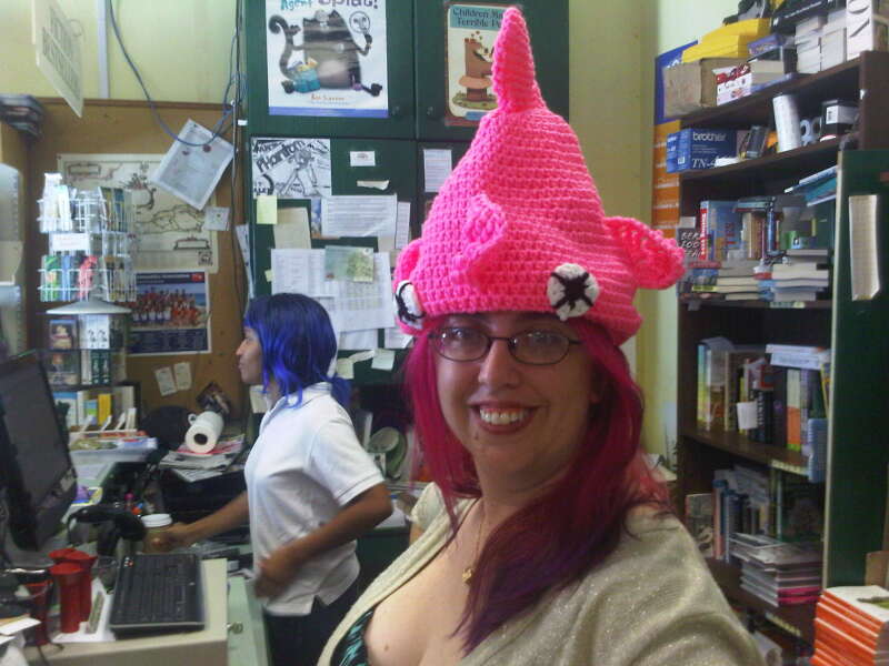 All change: Bermuda Bookstore’s Miriam Kaye now has hot pink hair. She and her sister Hannah Willmott raised more than $600 for cancer charity PALS after asking customers to pay $1 to vote what colour they should dye their hair for on PALS Mad Hair Day.