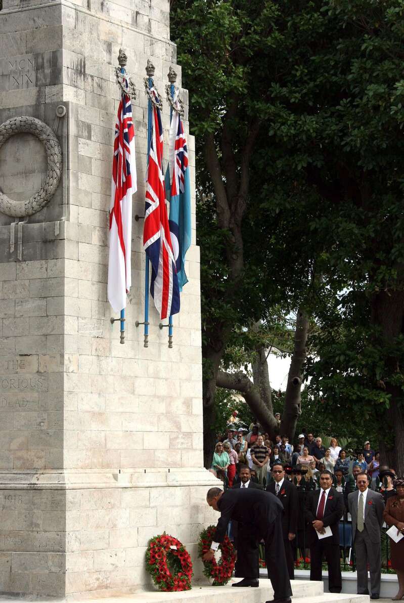 PHOTO BY TAMELL SIMONS vets.Remembrance Day Parade 11:00 a.m. Saturday 11th November 2006PRI BROWN LAYS WREATH.The Remembrance Day Parade to commemorate those who fell in the two World Wars will take place at the Cenotaph, Hamilton on Saturday 11 November 2006 at 11:00 a.m. Units from the War Veterans, the Bermuda Regiment and the Bermuda Regiment Band & Corps of Drums, the Bermuda Regiment Gun Troop, the Bermuda Cadet Corps, the Bermuda Police, the Bermuda Sea Cadets, the Salvation Army Band, the North Village Band, the Somerset Brigade Band and St. John Ambulance will all be on parade.