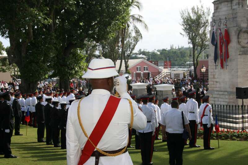 PHOTO BY TAMELL SIMONSvets. Remembrance Day Parade 11:00 a.m. Saturday 11th November 2006 The Remembrance Day Parade to commemorate those who fell in the two World Wars will take place at the Cenotaph, Hamilton on Saturday 11 November 2006 at 11:00 a.m. Units from the War Veterans, the Bermuda Regiment and the Bermuda Regiment Band & Corps of Drums, the Bermuda Regiment Gun Troop, the Bermuda Cadet Corps, the Bermuda Police, the Bermuda Sea Cadets, the Salvation Army Band, the North Village Band, the Somerset Brigade Band and St. John Ambulance will all be on parade.