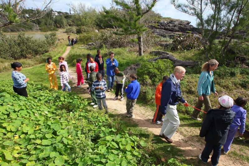The Bermuda National Trust hosted its annual Children's Nature Walk at Spittal Pond this week.More than 300 children turned out on Tuesday for a tour of the pond, guided by volunteers from the Aquarium, the Bermuda Institute of Ocean Sciences, the Parks Department and the Botanical Gardens.Different aspects of the pond flora and fauna, birds, geography were highlighted by Ruth Thomas, Steve Burgess, Nick Barton and Rob Chandler.
