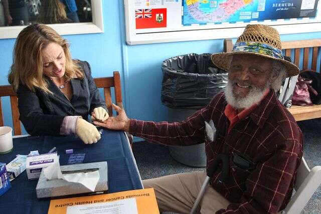 Hundreds of men yesterday seized the chance to make sure they’re in good health without having to shell out costly doctor’s fees.Charities and Government organised free check-ups for indicators including blood pressure, body fat and glucose levels which would otherwise involve an expensive trip to the GP.Numerous men waiting in the long queues at Front Street’s Number Six Shed told The Royal Gazette their main incentive was the opportunity to save cash during the economic crisis.Ric Winn, of St George’s, who wanted to find out his body fat level so he would know how much weight he needs to lose, said: “This is free. It’s nice for people who aren’t fortunate enough to have health insurance that covers this type of check-up or health screening.“If you eliminate the exorbitant costs associated with preventive healthcare, more people would take their healthcare seriously.”Landscaper Gerald Dillas, from Devonshire, who wanted to find out his blood pressure, said: “It’s the prices that have brought me here. Doctors are expensive, man.“Usually you have to pay first and then collect from your insurance later. If you go for a physical, it’s about $300 or $400 to pay. That’s a lot of money. It’s your whole pay cheque sometimes.”Another man said: “This is great. My mama and my girlfriend both got on me to come here. They said don’t let this day go by because it’s free.“I’m feeling pretty good about my health but I still have to get checked out anyway. It’s free, which is a big deal in these days.”Legendary roundabout waver Johnny Barnes, 88, who was among the men getting checked out, said he puts his longevity down to the grace of God.He said: “I feel fine, but it’s good to check these things, especially when you get to my age.”The event was sponsored by Bermuda Heart Foundation, Bermuda Diabetes Association, Open Airways, Bermuda Cancer and Health Centre and the Department of Health.Health Minister Zane DeSilva said men statistically die younger than women, partly because they don’t monitor their health properly.“Armed with this information and the knowledge that heart disease, diabetes, cancer, and lung diseases are the major health concerns for our community, and our men, we are offering a full slate of free screenings,” he said.