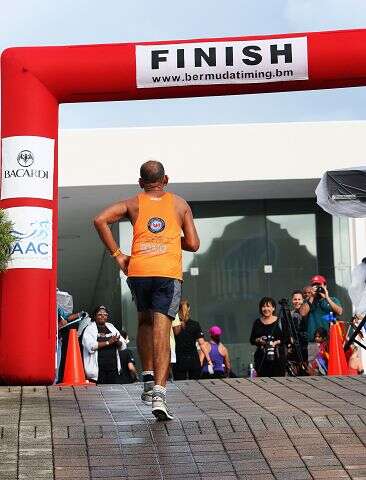 Chris and Ashley Estwanik reprised their husband and wife race-winning combination of a year ago to successfully defend their Bacardi 8K road race titles yesterday.In an impressive display of front running, Chris smashed the course record in 24 minutes and 46 seconds, beating Lamont Marshall’s mark of 25.25 set two years ago.The former US Olympic team trial finalist was untroubled in the race, opening up a commanding lead in the first few miles that eventually gave him a three-minute margin of victory over closest rival Gary Raynor. Third man home was Christopher Harris.“I went out two weeks ago and did a workout with Sean Trott and Chayce Smith. That gave me a lot of confidence to go out today and attack the race,” he said.“It is one of those courses where you can’t really get a good rhythm going,” he noted, but said he was pleased with his performance, which represents the fastest 8K he has chalked up in Bermuda. Chris, 31, said both he and Ashley are looking at future running challenges and are pondering the possibility of racing the full 26.2-mile marathon distance.The Estwaniks celebrated the arrival of their second child, son Harrison, during the summer. Yesterday’s Bacardi race was Ashley’s comeback race (outside of a team triathlon). She started at a conservative pace, but soon had early leaders Jennifer Alen and Deon Breary in her sights.The lead swapped between the trio of top women during the middle section of the race, which looped from the Bacardi HQ on Pitts Bay Road, to Spanish Point, North Shore Road, Berkeley Road and a return along Pitts Bay Road.“I wanted to test myself and see where I was today. I started conservatively. I saw Jenny and Deon and then had them in striking distance. I’ve been aware of how well they have both been running this year from reading the reports in the paper,” said the 2006 Commonwealth Games 1500m finalist.“I was staying with them and then the lead went back and forth between all of us. I passed Jenny at Spanish Point and then Deon passed both of us further on.” Ashley, 33, said she appreciated being able to have such close competitiveness in the race. She eventually moved ahead to win in 31.44 from Alen, who ran 32.01 and third-placed Breary in 32.59.Another notable record to fall in yesterday’s event was the men’s over-60s mark. Eddie Fisher, 61, eclipsed his 2010 winning time by almost a full minute to set a new age-group course record of 33.57.In the 8K walk, which was held in conjunction with the run, Sinclair Smith was first in 54.27, with Davina Dickinson recording the same time. Third place went to Loren Belboda in 54.40.A total of 334 runners and 119 walkers completed the 8K course.Bacardi 8K Road Race age group winners:Women: (Overall) Ashley Estwanik 31.44; (18-39) Jennifer Alen 32.01; (40-49) Deon Breary 32.59; (50-59) Lorna Hussey 42.26.Men: (Overall) Chris Estwanik 24.46; (18-39) Gideon Kigotho 29.44; (40-49) Gary Raynor 27.48; (50-59) Ifor Hughes 33.55; (+60) Eddie Fisher 33.57.